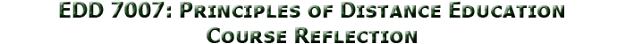 Prior to engaging in Principles of Distance Education (EDD 7007), my conception of distance education included computer and web-based learning and synchronous learning situations where the learner was separated from facilitator or the rest of the learners. As I continued through EDD 7007, I grew to understand that my conception, although not wrong, was incomplete. By the end of the course, I knew distance education to be any facilitated learning situation that involved a separation of knowledge, time, or space between the facilitator and learner. Much of this is based on the Equivalency Theory of education positioned by Simonson & Schlosser (Simonson, M., Smaldino,S., Albright, M, & Zvacek, S., 2006). This theory states that distance education, when designed and executed properly, offers an equivalent learning experience to that of a traditional classroom setting. It was also through this theory I was exposed to the Association for Educational Communications and Technology (AECT) definition of distance education. Formally, distance education is “institution-based, formal education where the learning group is separated, and where interactive telecommunications systems are used to connect learners, resources, and instructors” (Schlosser, L. & Simonson, M., 2002). This course has set a sound foundation of distance education for me to build upon, whether this is in future educational situations or in practice in my career. Beyond adopting a formal conception and definition of what distance education is, I have developed a respect for the art of distance education. From understanding the importance of communication and communication media to exploring techniques for transitioning from traditional classroom education to online education, I have learned there is a significant amount of effort necessary to produce distance education that offers equivalent learning experiences. |