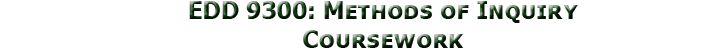 As part of my EDD 9300 course reflection I mentioned that an unexpected result came from this course. As I progressed through each assignment, the course became less and less intimidating. By breaking the concept paper up into small chunks, the task became that much more achievable. At the end of the course I realized the advantage I now possessed. This foundational knowledge and somewhat practical experience completing a formal research experiment would make any future research experiment that much easier. Furthermore, it was this course which firmed up my decision to immediately continue onto a doctorate after completing the Masters Degree.